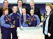 Cllr Barbara Hughes and Hampstead FC players Hannah McWilliams,