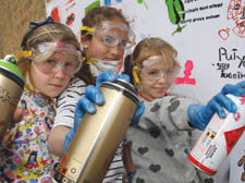 Ruby Sweet, 11, Anna Wernick, 10, and Edie Martin, 11, on a break from ‘tagging’ a wall |